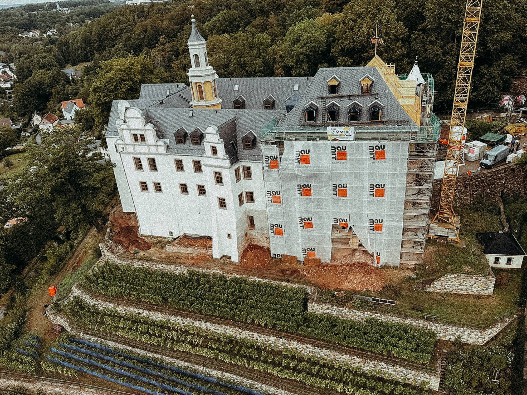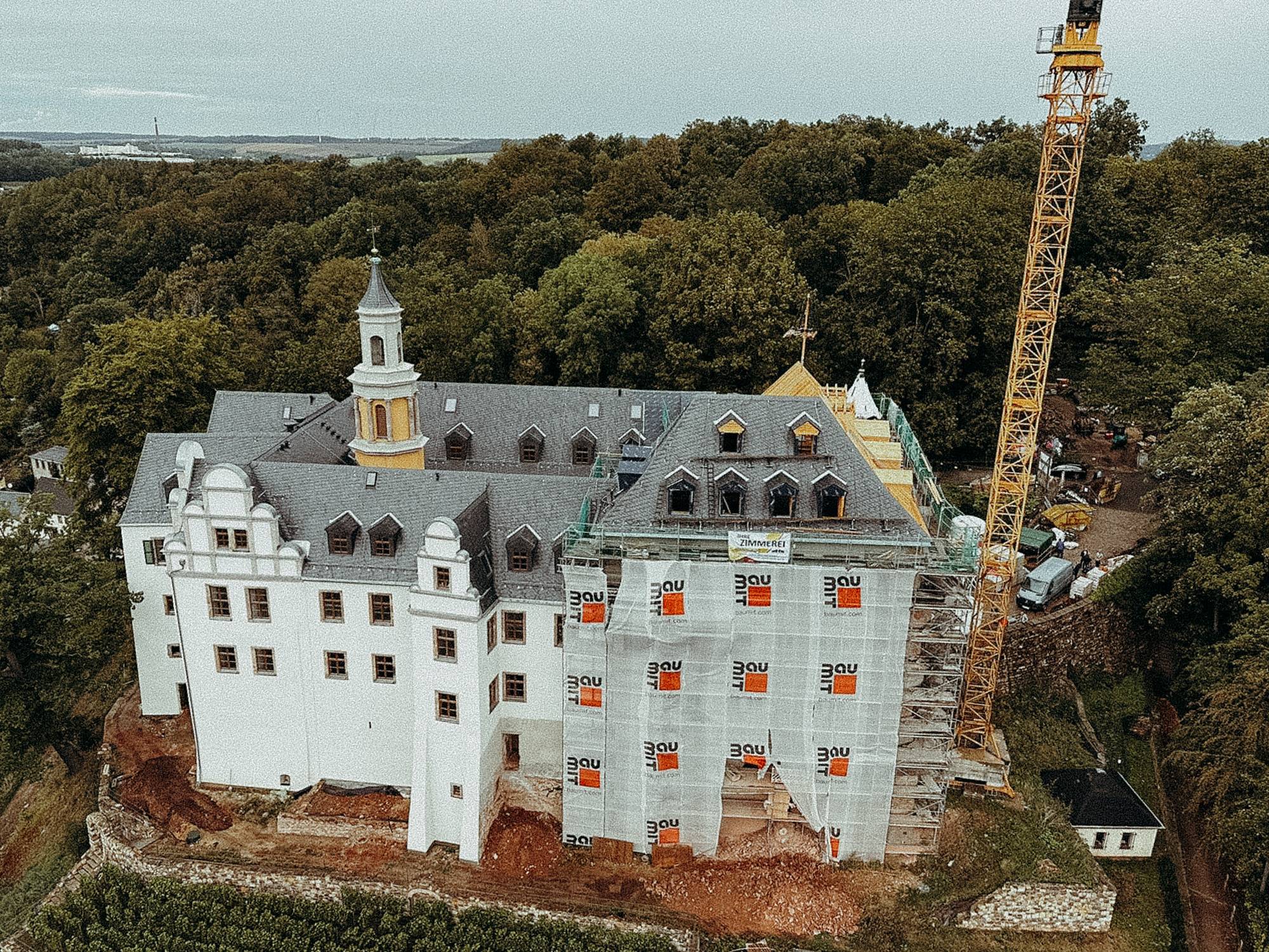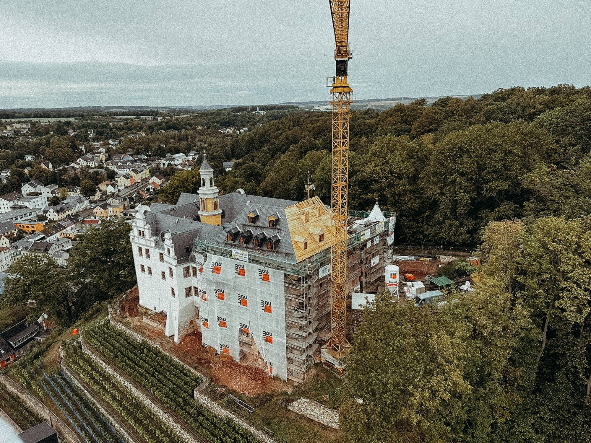 Für das Schloss Lichtenstein in Sachsen haben wir einen neuen Dachstuhl als aufwendige Walmdachkonstruktion errichtet. Das Projekt lief von April 2023 bis Januar 2024 und stellte hohe Anforderungen an Präzision und handwerkliche Umsetzung.